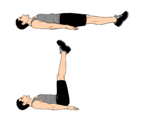 仰向けで脚を伸ばし、ゆっくりと持ち上げる運動です。腸腰筋に効果がありますが、腰が反らないように注意が必要です。