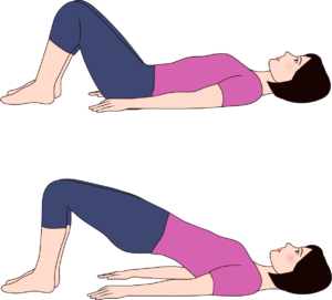 仰向けで膝を立て、お尻を持ち上げる運動です。お尻と体幹を同時に鍛えることができます。