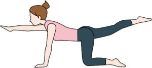 四つ這いの姿勢から、対角の手と足を伸ばすトレーニングです。体幹の安定性を高めるのに非常に効果的です。