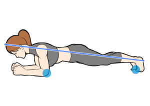 プランクは体幹全体を鍛えるトレーニングです。肘とつま先で体を支え、頭からかかとまで一直線に保ちます。